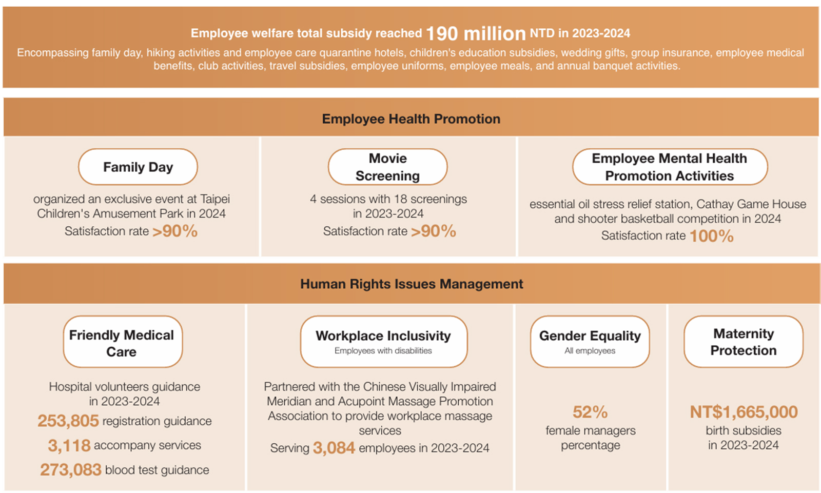 Cathay General Hospital is actively facilitating a healthy workplace to enhance employees’ satisfaction and sense of identification. The hospital believes that optimal organizational performance is achieved when personnel are empowered to leverage their individual competencies within an environment of excellence, thereby enabling the medical institution to fulfill its role as a trusted healthcare steward for society.